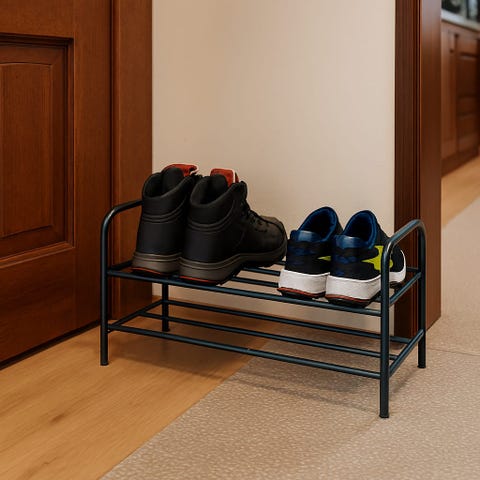 Myydään tarpeettomaksi jäänyt kenkähylly, jossa päällä pehmustettu penkki.