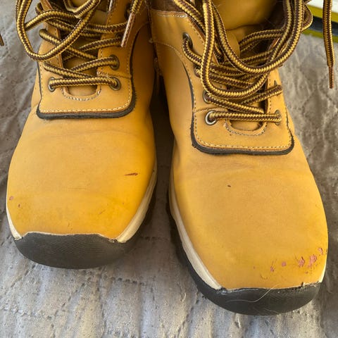Koko 35, sisämitta vähän päälle 23cm. Pesua vailla ovat ja suosittelen laittamaan uuden vedenpitävän suihkeen ennen käyttöön ottoa. Toinen pohja käyty suutarilla korjauttamassa jossain vaiheessa kun ei pysynyt kunnolla paikallaan.
