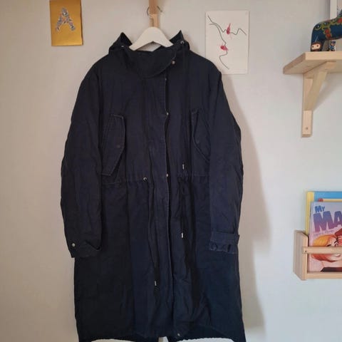Marimekko naisten talvitakki, koko S. Takki on valmistettu polyesteristä ja siinä on mustavalkoinen, kirjava kukkakuosi. Mallissa on huppu ja etupuolella vetoketjukiinnitys. Sopii talvikäyttöön .