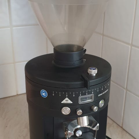 Nuova Simonelli Mythos One kahvimylly. Ammattikäyttöön suunniteltu sähköinen espressomylly, jossa on musta metallirunko ja etupuolella portafilterpidike. Laitteessa on selkeä ohjauspaneeli annostuksen säätöön sekä säiliö papuja varten yläosassa. Soveltuu espressopapujen jauhamiseen kahviloissa, ravintoloissa tai kotikäytössä, jossa tarvitaan tarkkaa ja toistettavaa jauhatuslaatua.