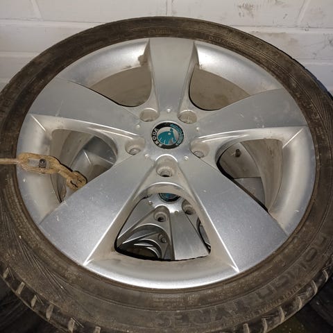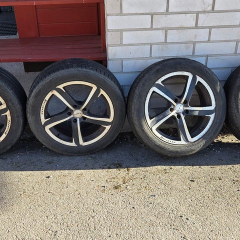 Octavia -14 ylimääräiseksi jäänyt kesärenkaat aluvanteilla.