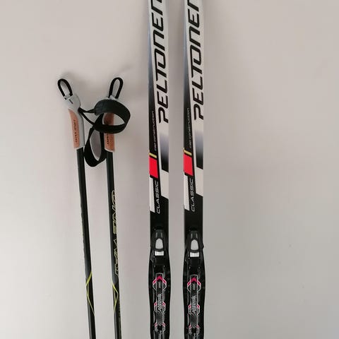 Peltonen Delta step 150cm lasten sukset. Voiteluvapaa pitopohja. Pohjat hyvässä kunnossa. Sauvat kaupanpäälle jos tarvii.