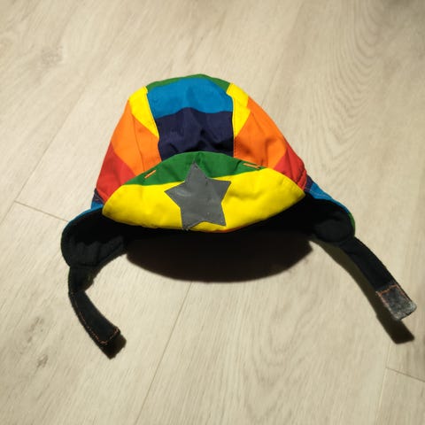 Oranssin punainen lakki, jossa harmaita tähtiä. Koko 6-8YRS. Materiaali 50% villa ja 50% akryyli, fleecevuori. Kunto erinomainen kuin uusi. Jäänyt käyttämättä.