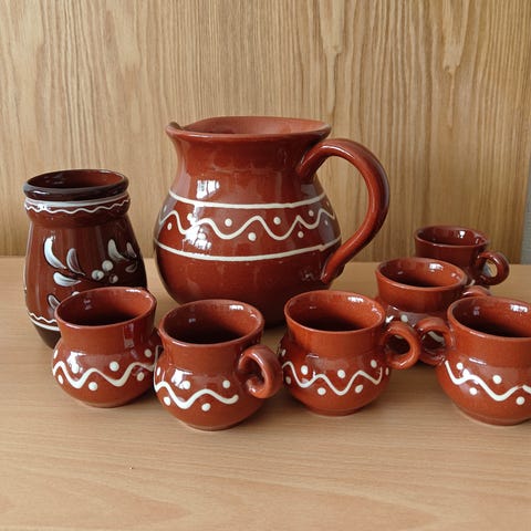 Kuvan keramiikka säilytysastiat, ruukut, samaa sarjaa, molemmissa myös kannet, ehjät ja siistit. Keittiöön säilytysastiaksi esim. pikkuleiville. Yhteishinta 12 euroa. Kulkeutuu sovittaessa Vaajakoski-Jyväskylä suuntaan.