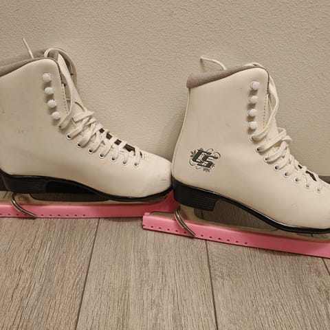 Sisukset vielä hyvässä kunnossa, toisen luistimet sivussa mustaa viiva ja pieni naarmu (kuvassa).