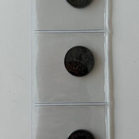 10 kappaletta 5 markka kolikoita vuodelta 1947.
