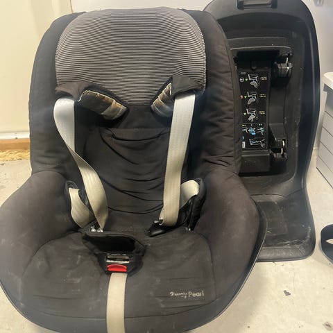 Tarpeettomana varastossa turvaistuin. Kasvot menosuuntaan.