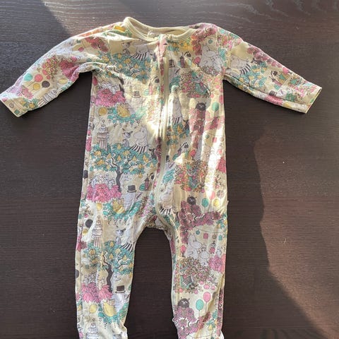 Myyn vauvan muumipyjaman/yöasun/yöpuvun koossa 80. Vetoketjun vetimistä väri lohkeillut mutta muuten en keksinyt moitteita.