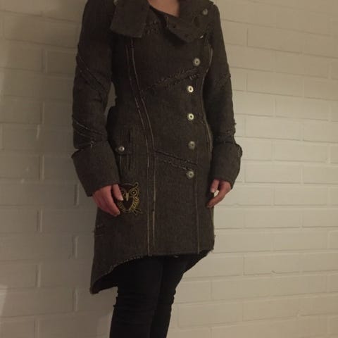 Sinapin värinen naisten pitkä villaksngastakki. Koko 38. Merkki Object