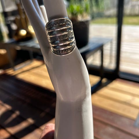 Sormus, hopeaa ja sinistä emalia, Kalevala Koru. Harvinainen. Koko n 19mm.