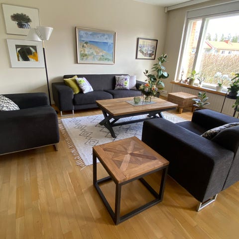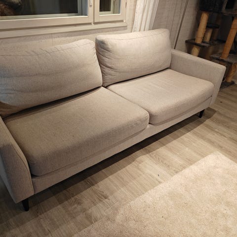Sohva on ollut käytössä noin 4 vuotta ja on hyvässä kunnossa. Tyynyjen päälliset on irrotettavat.