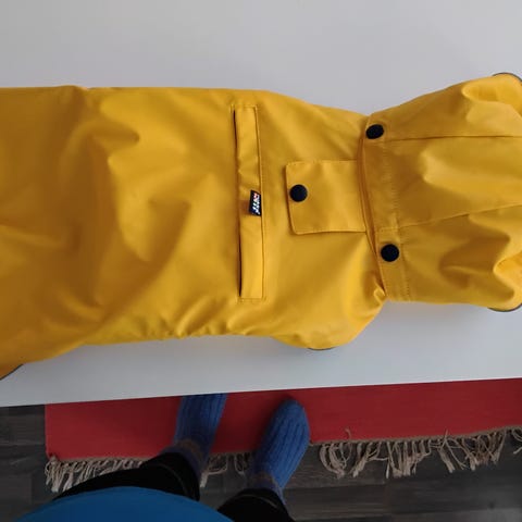 Pitkä kaulus on ja hyvät heijastimet.