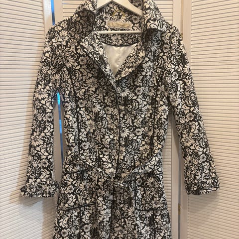 Koska takin on ollut tarkoitus pysyä napakasti yllä kumartuessa ja polvistuessa siinä on kaksoiskiinnitys (katso kuvat). Malli on viittamainen ja hihat ja helmat jäävät lyhyeksi tarkoituksella. Sopii monen kokoiselle käyttäjälle kunhan olka-olka ja hihan pituus sekä takin helman pituus ovat mieleiset.
