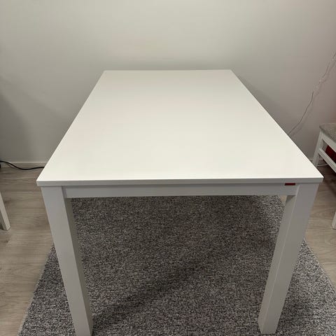 Valkoinen ruokapöytä. vähän on käytön jälkiä ja pieniä kolhuja.