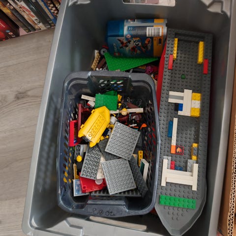 Legoja ja autoja,ukkeleita,alusta yms...