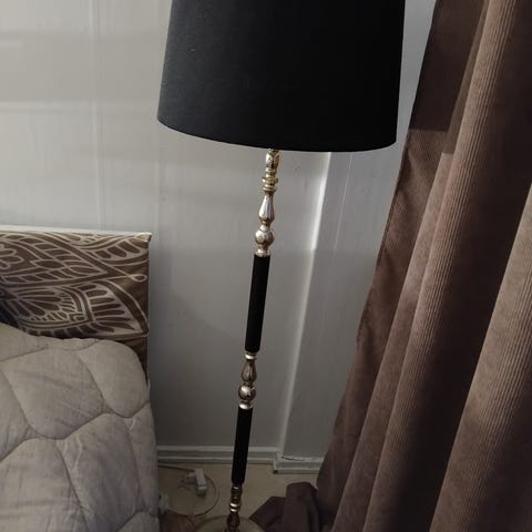 Harmaa-musta lattiavalaisin lukuvalolla. Korkeus 181cm.