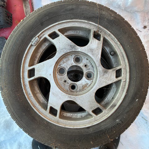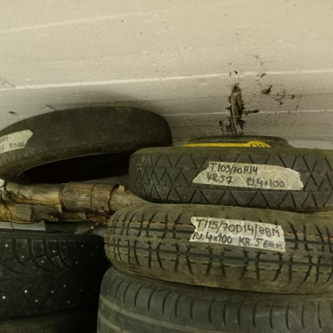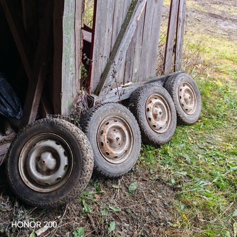 Läjä renkaita. 13 tuumasia 4 kpl. Huonot nastat alla. 1kpl rengas vanteilla. Isompia renkaita peltivanteilla 2kpl. Hinta koko läjälle.