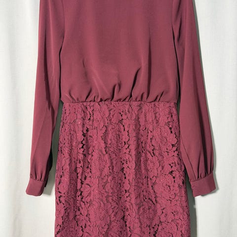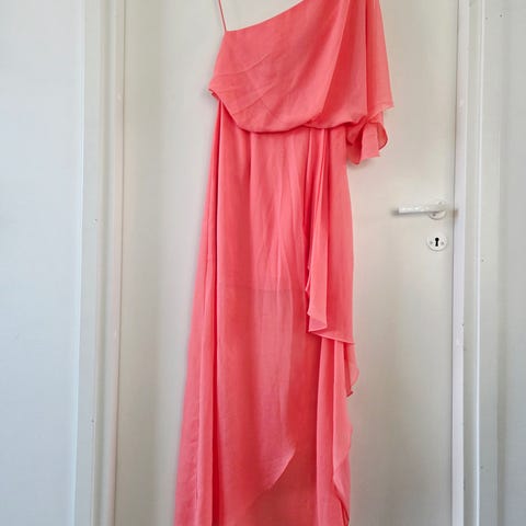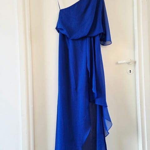 Kokonaispituus pituus n.110cm (olka-helma), pituus ilman olkaimia n.97cm. Mekon leveys rintojen alta n.33cm.