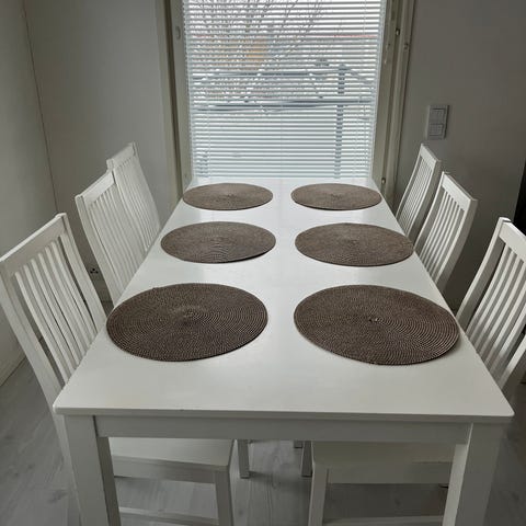 Ruokapöytä 6-8 hengelle (ei tuoleja). Nopea nouto toivottavaa, siksi hinta pieni.
