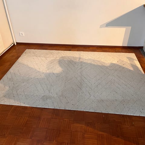 Mattoon painunut johdon jälki.saattaa pesussa lähteä.