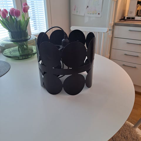 Retro valkoinen pallo valaisin kattoon tai seinään. Valaisin osa on metallia, kanta osa on muovia. Toimii kuten pitää. Töpseli sopii normaaliin töpseli paikkaan, pitkä johto ja valokatkaisin.