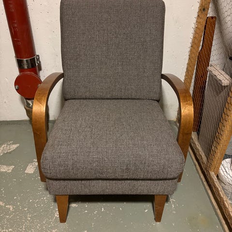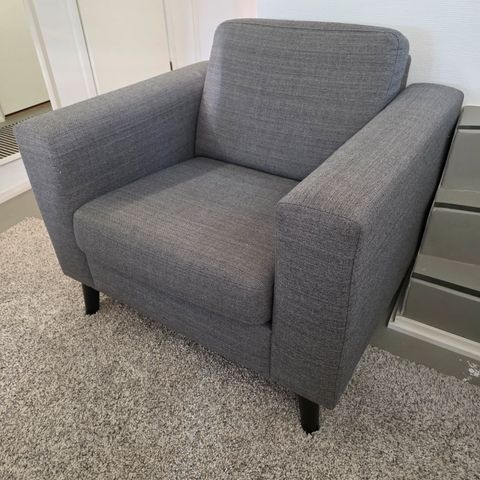 Tummanharmaa nojatuoli ostettu marraskuussa Sotkasta. Maksettu 300€. Vastaa täysin uutta, istuttu vain muutamia kertoja. Vivusta saa jalat koholle. Selkänojan saa irti kuljetusta varten, omat kantajat mukaan. Mahtuu hissiin.
