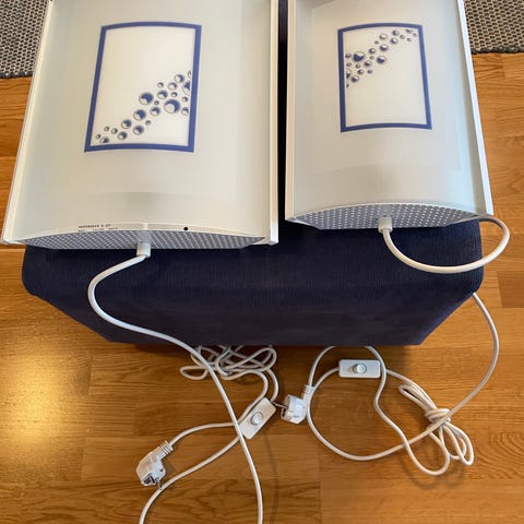 Kaksi seinävalaisinta, hyvässä kunnossa molemmat. Valaisimet sijaitsevat Tampereella.