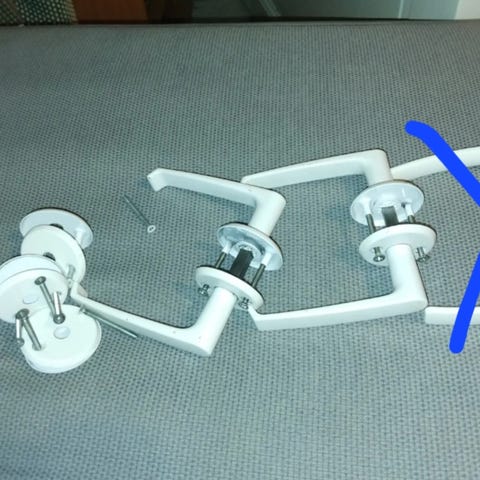 Valkoinen ovikahvasarja peitekilpi, Ovihela, painikekilpi tai rosetti