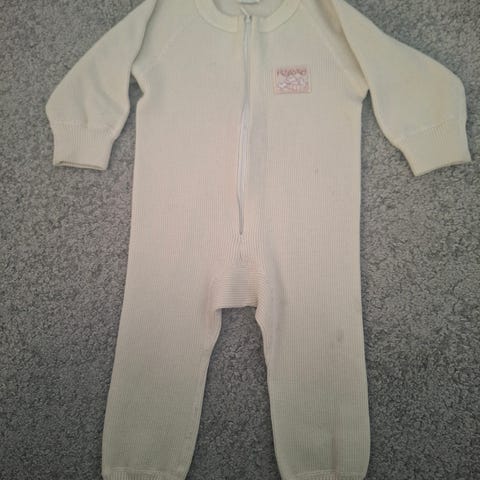 Hyvin vähän käytetty ja oikein hyväkuntoinen heijastava toppahaalari ja Ruskovilla villahaalari. Toppahaalarista en löydä huomautettavaa. Koko 80. Villahaalarin kunto kohtalainen. Muutamia pieniä reikää siististi paikattu ja jotain läiskää näkyy paikoin. Haitat esteettisiä, käytössä edelleen toimiva haalari. Koko 90, melko niukkaa mallia kuitenkin.
