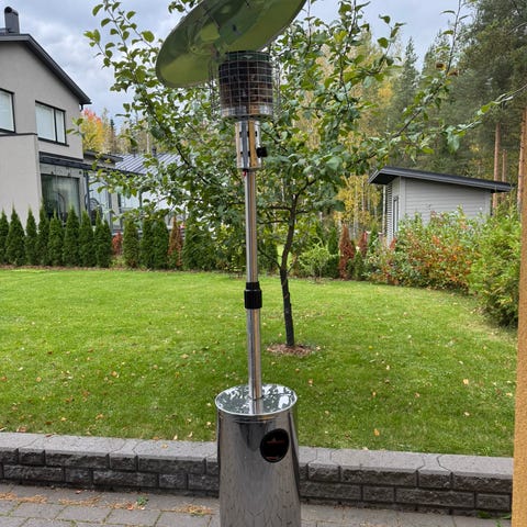Myydään siistikuntoinen ja hyvin toimiva kaasukäyttöinen ulkolämmitin, joka tuo terassille tai pihalle sekä lämpöä että kaunista tunnelmaa. Lämmitin toimii propaanilla ja siinä on helppokäyttöinen sytytys- ja liekinsäätö. Yläosassa koristeelliset laavakivet, jotka hehkuvat kauniisti käytön aikana.
