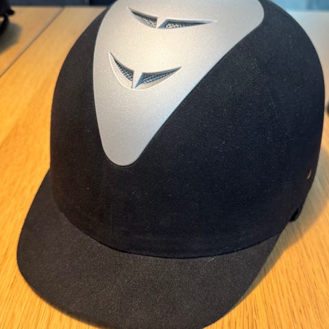 Royal Wescott Ventilation ratsastuskypärä. Kypärässä on musta pinta ja vaalea ilmanvaihto-osa yläosassa. Säädettävä leukahihna ja pehmustettu sisäosa lisäävät käyttömukavuutta. Mukana alkuperäinen käyttöohje ja tuotelaput.
