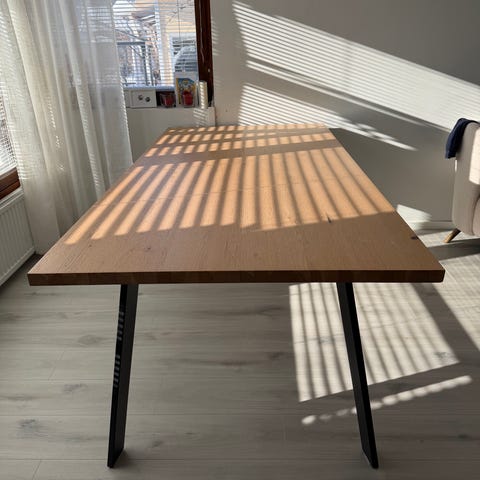 Myydään tamminen ruokapöytä ja 6-8 tuolia