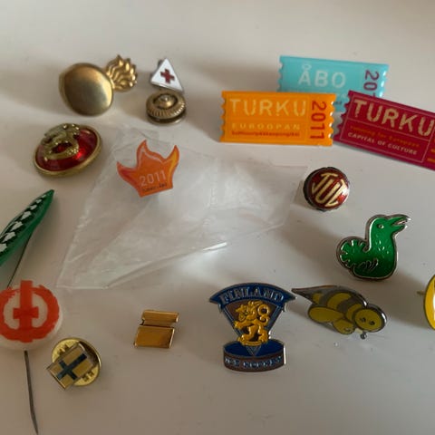 Erilaisia pinssejä, yhteensä 24 kpl. 1990-luvulta Mm.Jukolaviesti 2 kpl ja Atlanta 1996. Nouto tai toridiili/ postitus. Yhteishinta 5€.