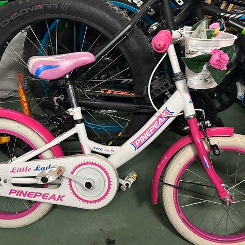 White merkkinen lasten polkupyörä. Ei vaihteita ja jalkajarrut. Hyvässä kunnossa. Pyörä on 16 tuumainen.