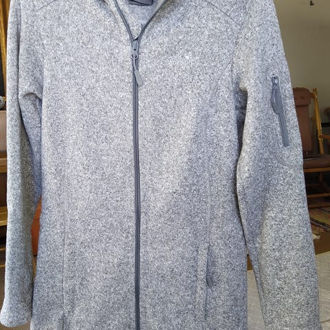 Pitkä, hupullinen, kevyt, lämmin takki. Pituus 82cm, kainalo-kainalo 45cm, olka-hihansuu 64cm. Kaksi taskua, sisäpuolella yksi tasku. Käytetty hyvin vähän.