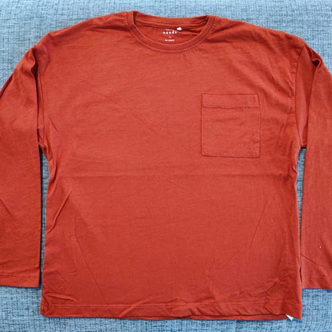 Hauska ja siisti Name it paita. Koko 146/152. Hihojen pituus kainaloiden alta mitattuna n. 44 cm. 95 % puuvillaa, 5 % elastaania.