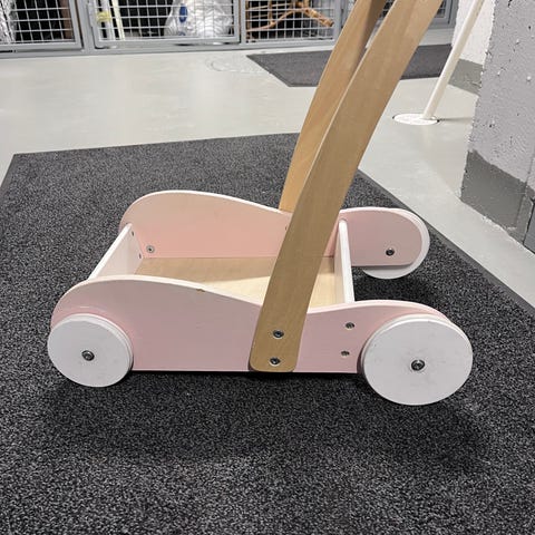 Pienten lasten lelu kävelyn ja hienomotoriikan harjoitteluun. Tää oli kiva! Jotain kulumaa näkyvissä, katso kuvasta esim pallokahvat.