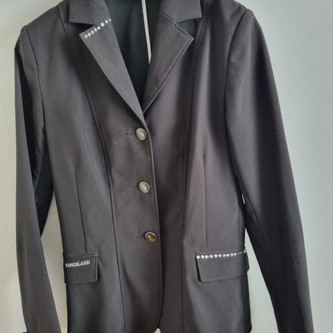Tummansininen vähän käytetty kisatakki. Koko 36. Yksi nappi tippunut edestä mutta varanappi löytyy.