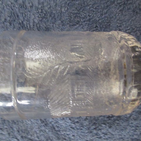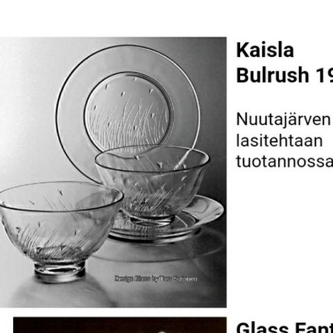 Materiaali ja tekniikka: Lasi on väritöntä puristelasia, jossa on kohokuvio.