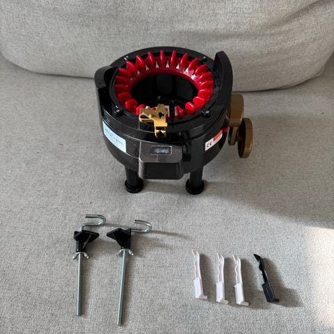 Addi Express neulemylly, isompi koko eli 46 neulaa. Mukana pöytä kiinnikkeet ha vaihtoneuloja/koukkuja. Myynnissä myös pienempi neulemylly.