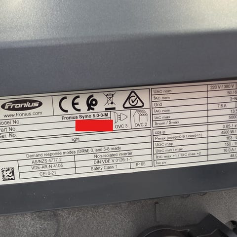 Myydään täysin tomiva aurinkopanelien invertteri, joka hallinnoi kahta eri paneelialuetta. Kotiakkuhankinnan kautta tämä jäi ylimääräiseksi.