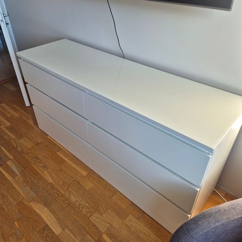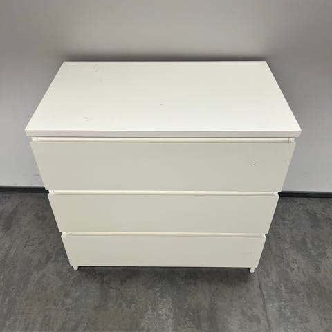 Ikea Malm 3-laatikkoinen lipasto (valkoinen) + lasilevy (maitolasi)