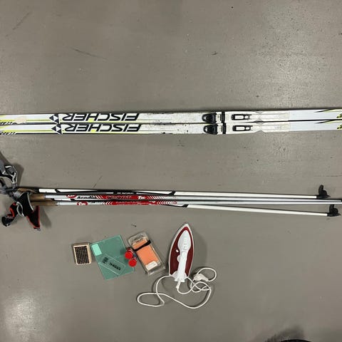 Fischer RCS Classic sukset 202 cm ja Exel hiilikuitusauvat 155 cm