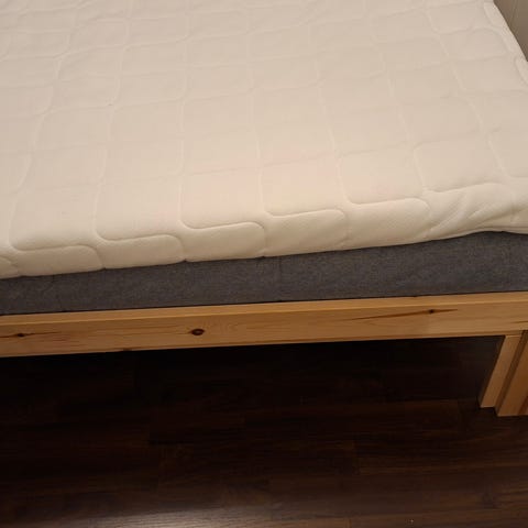 Jenkkisänky. Runko hyvässä kunnossa. Petauspatjan saa mukaan, on suhteellisen siisti. Petauspatjasta voi irrottaa päällisen pesuun. Muistaakseni ostettu Jyskistä.