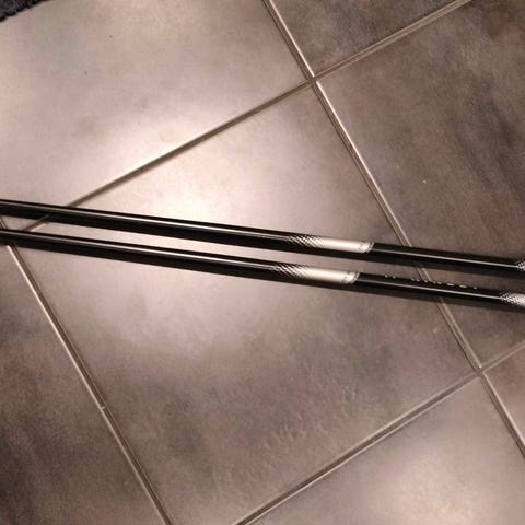 Laskettelusauvat, pituus 105 cm. Väriltään valkoiset mustilla ja sinisillä yksityiskohdilla. Sauvoissa muoviset sommat sekä muoviset kahvat rannelenkeillä. Soveltuvat lasketteluun.