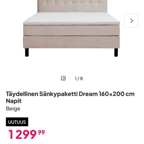 Tilaus ei saapunut ajoissa ja ostin jo uuden. Nyt tuli perille ja en tarvitse sänkyä enää. Uuden, pakattuna olevan voi siis tulla noutamaan kanssani sotkasta hakupisteeltä. Itse maksoin sängystä ja patjasta 350. Tuotteet ovat siiri runkopatja 80×200 ja Clark sijauspatja.