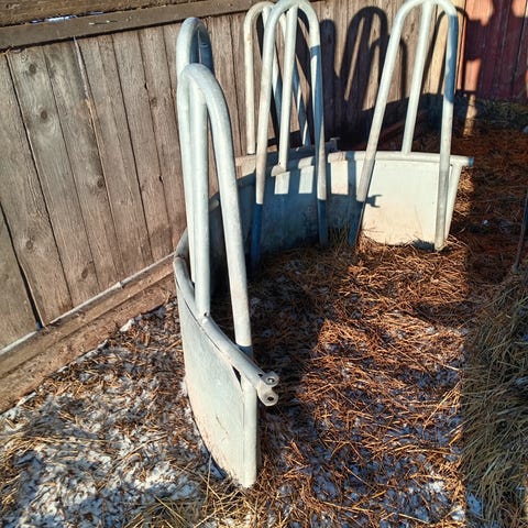 6-kulmainen katettu ruokintahäkki pienille eläimille • Tiiviit lohkot • Pressukatto • 12 ruokintapaikkaa – leveys 41,5 cm • Sisämitat: min. 165 cm, max 195 cm • Korkeus 160 cm • Alumiinista valmistettu Jokaisessa osassa on suuret runkoputket, jotka asennetaan tiiviisti toisiinsa kiinni kupumuttereilla. Näin tukevan ruokintahäkin osien väliin ei jää rakoja eikä osissa ole teräviä reunoja, joihin eläimet voisivat loukata itseään. Täytön yhteydessä ruokintahäkki nostetaan ja asetetaan alas paalin päälle. Kevyen alumiinirakenteen ansiosta häkki voidaan nostaa käsivoimin ilman apuvälineitä. Pienille eläimille soveltuva ruokintahäkki. HUOM! Heinäpaalin ympärillä oleva muovikalvo/verkko on poistettava ennen käyttöä. Toimitus ja asennus Ruokintahäkissä on kuusi osaa, jotka asennetaan yhteen paikan päällä. Ruokintahäkki toimitetaan terästelineessä. Mukana tulevat kupumutterit, pressukatto ja nippusiteet pressukaton kiinnittämistä varten. Mitä hyötyä ruokintahäkin käyttämisestä on? • Voit pienentää hävikkiä, sillä eläimet eivät tallaa tippunutta korsirehua jalkoihinsa. • Voit parantaa ruokintapaikan hygieniaa, sillä saastumisriski pienenee. • Voit käyttää vähemmän aikaa ruokintapaikan siivoamiseen ja pienentää lantalaan menevän korsirehun määrää.