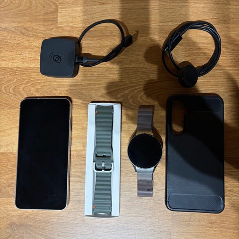 Myydään Samsung Galaxy S24 +, Samsung Watch Ultra ja Galaxy Buds3 Pro kuulokkeet. Mukaan pakkaukset sekä puhelimelle sekä kellolle suojakuoren.