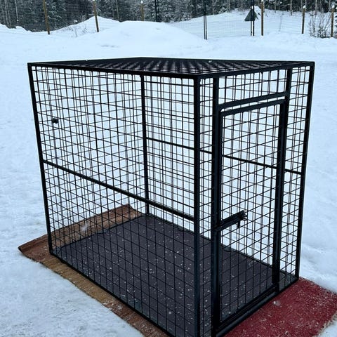 Koirahäkki iso, 23,04 m² 15 kiinteää elementtiä 120 x 180 cm 1 ovellinen elementti 120 x 180 cm • Pinta-ala: 23,04 m² • Oviaukko L x K 61 x 167 cm • Galvanoitu • Kehys 25 x 25 mm profiiliputkea • Verkon silmäkoko 60 x 65 x 4 mm Sisältää asennuskiinnikkeet.