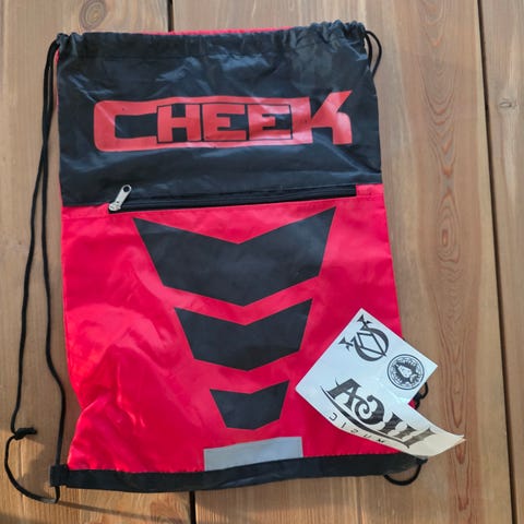 Cheekin keikkareppu jossa oheishärpäkkeet mukana.